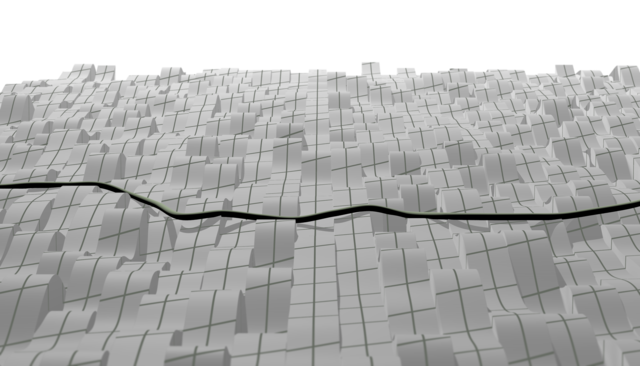 Depinning of a stiff directed line under force (visualized by a tilt of the energy landscape).we considered the depinning transition, i.e. the behavior under a constantly acting force. Above a finite threshold this force is dominant and the line is moving as a whole whith a friction caused by the random potential landscape it's traversing. The transition between the regmes of vanishing and finite long-time center-of-mass speed are in some regards similar to classical critical phenomena. The possible interplay of the static localization transition and the dynamic transition at a finite force threshold was of particular interest to us. It turns out that the depinning is ultimately a T=0 fixed point and temperature effects are negligible. Remarkably (and different from the static transition), this behavior is well described by functional renormalization group theory.